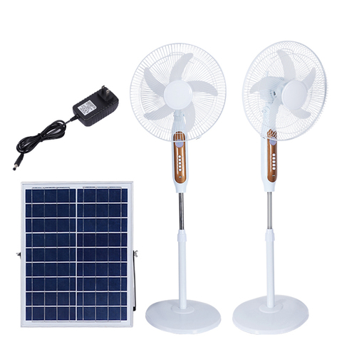 พัดลมตั้งพื้นแบบชาร์จไฟได้16นิ้วความเร็วสูงกลางแจ้ง22W พลังงานแสงอาทิตย์พร้อมอะแดปเตอร์ DC AC แบบหมุนได้สำหรับใช้ในครัวเรือน